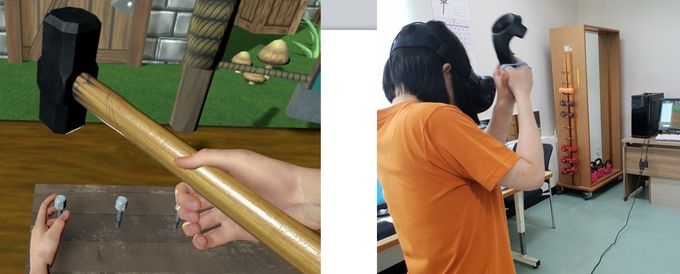 ȯÀÚ´Â ¼Õ¿¡ Âø¿ëÇÑ ÄÁÆ®·Ñ·¯¸¦ ÀÌ¿ëÇÏ¿© °¡»óÇö½Ç ¼Ó¿¡¼ ¸ÁÄ¡Áú, °ø Àâ±â, ÄÅ µû¸£±â, °Åǰ¹æ¿ï ¸¸Áö±â, ½Ç·ÎÆù Ä¡±â ÃÑ 5°¡Áö °úÁ¦¸¦ ¼öÇàÇß´Ù.
