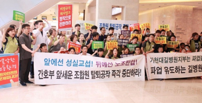 ![]() °¡Ãµ´ë ±æº´¿ø Á÷¿øµéÀÇ ¡®³ëÁ¶ÆÄ±« °øÀÛ¡¯À» µÑ·¯½Î°í °¥µîÀÌ ±í¾îÁö´ø º´¿ø°ú ³ëÁ¶°¡ ±ØÀûÀ¸·Î ÇÕÀÇ¿¡ ¼º°øÇß´Ù.