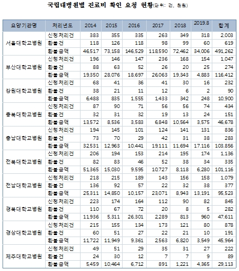 ÀÌ ÀÇ¿ø¿¡ µû¸£¸é 2015³âºÎÅÍ 2019³â 8¿ù±îÁö ±¹¸³´ëº´¿ø Áø·áºñ È®ÀÎ ¿äûÀ» ÅëÇØ ȯºÒµÈ ±Ý¾×Àº 1,930°Ç 8¾ï6,418¸¸¿øÀ¸·Î ³ªÅ¸³µ´Ù.
