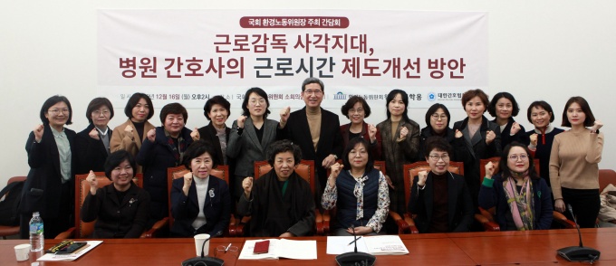 ´ëÇѰ£È£Çùȸ¿Í ±èÇÐ¿ë ±¹È¸ ȯ°æ³ëµ¿À§¿øÀå ÁÖÃÖ·Î Áö³ 16ÀÏ ±¹È¸ ȯ°æ³ëµ¿À§¿øÈ¸ ¼ÒȸÀǽǿ¡¼ ¿¸° '±Ù·Î°¨µ¶ »ç°¢Áö´ë, º´¿ø °£È£»çÀÇ ±Ù·Î½Ã°£ Á¦µµ°³¼± ¹æ¾È' °£´ãȸ¿¡¼´Â º´¿ø °£È£»ç°¡ °Þ°í ÀÖ´Â ºÒÇÕ¸®ÇÑ ±Ù·Î°è¾à°ú ³ëµ¿½ÇÅ¿¡ ´ëÇØ Åä·ÐÇß´Ù.