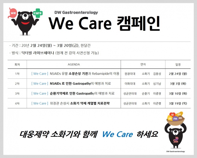 ´ë¿õÁ¦¾à(´ëÇ¥ Àü½ÂÈ£)Àº 24ÀϺÎÅÍ ÀÇ·áÁøµéÀ» ´ë»óÀ¸·Î ºñ½ºÅ×·ÎÀ̵强 ¼Ò¿°ÁøÅëÁ¦(NSAIDs) µîÀÇ ¾àÁ¦·Î ÀÎÇÑ À§Àå°ü ¼Õ»ó ¿¹¹æ ¹× Ä¡·á¸¦ À§ÇÑ ÃֽŠÁö°ßÀ» °øÀ¯ÇÏ´Â ¡®À§Äɾî Ä·ÆäÀÎ(WE CARE Campaign)'À» ½ÃÇàÇÑ´Ù°í ¹àÇû´Ù.