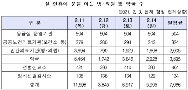 º¸°Çº¹ÁöºÎ´Â ¼³ ¿¬ÈÞ °£ ±¹¹Î ÀÇ·áÀÌ¿ë ºÒÆíÀ» ÃÖ¼ÒÈÇϰí ÀÇ·á°ø¹é ¾ø´Â ¾ÈÀüÇÑ ¼³ ¿¬ÈÞ¸¦ À§ÇØ 11ÀϺÎÅÍ 14ÀϱîÁö ¼³ ¿¬ÈÞ ¹®À» ¿©´Â º´‧ÀÇ¿ø, ¾à±¹, ¼±º°Áø·á¼Ò, Àӽü±º°°Ë»ç¼Ò Á¤º¸¸¦ Á¦°øÇÑ´Ù.