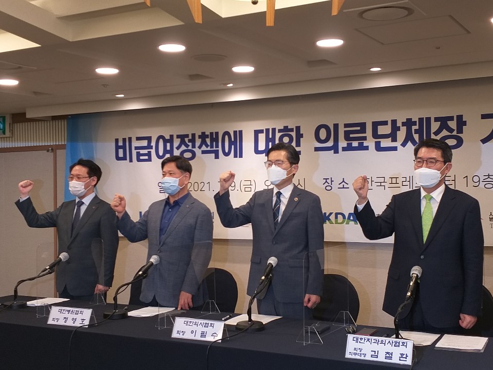 9ÀÏ Á¤ºÎ ºñ±Þ¿© Á¤Ã¥ ÃßÁø ¹Ý´ë¿¡ ³ª¼± 4°³ ÀÇ·á´Üü ȸÀåµé. ¿ÞÂʺÎÅÍ È«ÁÖÀÇ ÇÑÀÇÇùȸÀå, Á¤¿µÈ£ º´¿øÇùȸÀå, ÀÌÇʼö ÀÇÇùȸÀå, ±èöȯ Ä¡°úÀÇ»çÇùȸ ȸÀå Á÷¹«´ë¸®