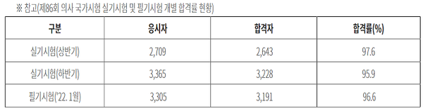 86ȸ ÀÇ»ç ±¹°¡½ÃÇèÀº Àüü 6043¸íÀÌ ÀÀ½ÃÇÑ °¡¿îµ¥ 5786¸íÀÌ ÇÕ°ÝÇß´Ù. ÇÕ°Ý·üÀº 95.7%¿´´Ù.