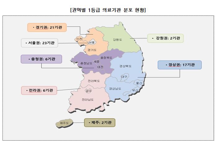 1µî±Þ ±â°üÀº ÃÑ 77°³¼Ò·Î 75°³¼Ò¿´´ø 7Â÷ Æò°¡º¸´Ù 2°³¼Ò ´Ã¾ú´Ù. ±Ç¿ªº°·Î´Â ¡ã¼¿ï 23°³¼Ò ¡ã°æ±â±Ç 21°³¼Ò ¡ã°¿ø±Ç 2°³¼Ò ¡ãÃæÃ»±Ç 6°³¼Ò ¡ãÀü¶ó±Ç 5°³¼Ò ¡ã°æ»ó±Ç 17°³¼Ò ¡ãÁ¦ÁÖ 2°³¼Ò·Î ¸ðµç ±Ç¿ª¿¡ 1µî±Þ ±â°üÀÌ ºÐÆ÷Çß´Ù.