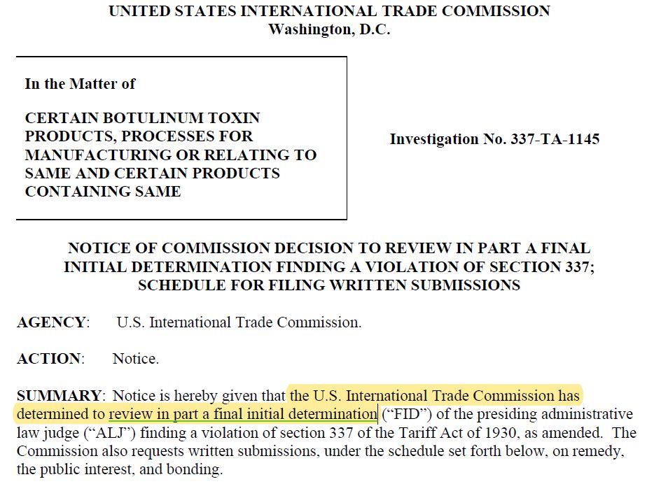 ÀÌ¿¡ ´ë¿õÁ¦¾àÀº ITC¿¡ ¡ã±ÕÁÖÀÇ µµ¿ë ¿©ºÎ ¡ãÁ¦Á¶°øÁ¤ÀÇ µµ¿ë ¿©ºÎ ¡ã±ÕÁÖ¿Í Á¦Á¶°øÁ¤ÀÇ ¿µ¾÷ºñ¹Ð¼º ¡ãITCÀÇ °üÇÒ±Ç ¡ã¿¤·¯°£(Allergan)ÀÇ ´ç»çÀÚ Àû°Ý(standing) ¡ã¹Ì±¹ ±¹³»»ê¾÷(domestic industry) ¿ä°Ç ÃæÁ· ¿©ºÎ¿¡ ´ëÇØ ÀÌÀǸ¦ Á¦±âÇØ¿Ô´Ù. À̹ø ITCÀÇ Àç°ËÅä °áÁ¤Àº ÀÌ·¯ÇÑ ´ë¿õÁ¦¾àÀÇ ÀÌÀÇ Á¦±â¿¡ ±âÀÎÇÑ °ÍÀÌ´Ù.