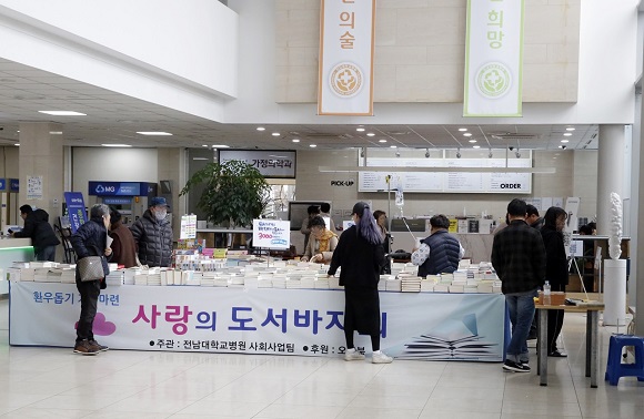 Àü³²´ëÇб³º´¿ø(º´¿øÀå ÀÌ»ï¿ë)ÀÌ Àú¼ÒµæÃþ ȯÀÚ¸¦ µ½±â À§ÇØ '»ç¶û ³ª´® µµ¼­¹ÙÀÚȸ'¸¦ Áö³­ 12ÀϺÎÅÍ 23ÀϱîÁö 2ÁÖ°£ º´¿ø 1µ¿ ·Îºñ¿¡¼­ °³ÃÖÇß´Ù°í ¹àÇû´Ù.