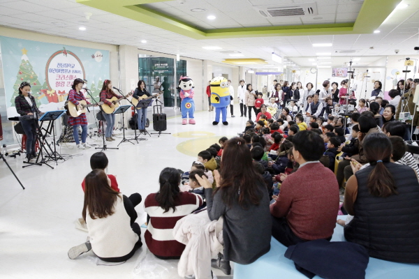 Àü³²´ëÇб³¾î¸°À̺´¿ø(º´¿øÀå ±¹ÈÆ)ÀÌ ¼ºÅºÀýÀ» ¸Â¾Æ ¾î¸°ÀÌ È¯ÀÚµéÀÇ ÄèÀ¯¸¦ ±â¿øÇÏ´Â À½¾Çȸ¸¦ 17ÀÏ º´¿ø ·Îºñ¿¡¼ °³ÃÖÇß´Ù.
