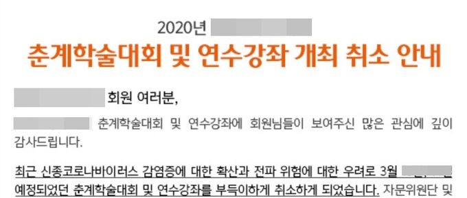 ÀÌ¾î ¡°º¸°í°¡ Àǹ«È­ µÅ ÀÖ´Â ±¹Á¦Çмú´ëȸÀÇ °æ¿ì 3¿ù Çà»ç ¸ðµÎ Ãë¼ÒµÆ´Ù¡±¸ç ¡°Ãß°è Çмú´ëȸ·Î ¹Ì·ç´Â ÇÐȸµéÀÌ ´ëºÎºÐ¡±À̶ó°í µ¡ºÙ¿´´Ù.