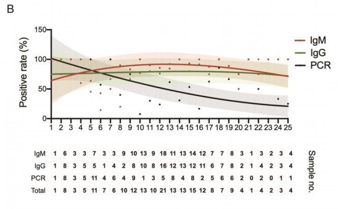 21ÀÏ ¹Ì±¹ °¨¿°ÇÐȸ ȨÆäÀÌÁö¿¡ °ÔÀçµÈ ³í¹® ¡®Profiling Early Humoral Response to Diagnose COVID-19¡¯¿¡¼­ Áß±¹ ¿¬±¸ÁøÀº È®ÁøÀÚ 82¸í°ú Äڷγª19 ¼Ò°ßÀÌ º¸À̳ª PCR °Ë»ç¿¡¼­ À½¼º ÆÇÁ¤À» ¹ÞÀº ȯÀÚ 53¸íÀÇ Ç÷Àå »ùÇà 208°³¸¦ ºÐ¼®ÇÑ °á°ú¸¦ ±Ù°Å·Î À̰°ÀÌ ÁÖÀåÇß´Ù.