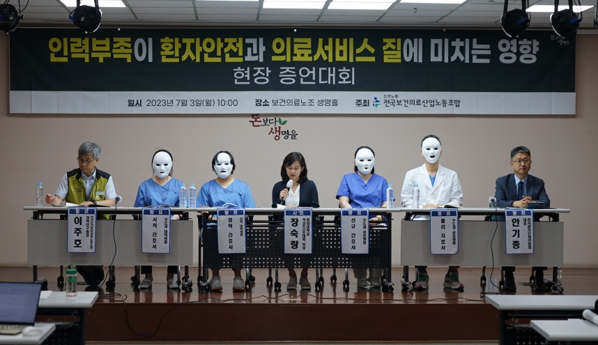 Àü±¹º¸°ÇÀÇ·á»ê¾÷³ëµ¿Á¶ÇÕÀÌ 3ÀÏ º¸°ÇÀÇ·á³ëÁ¶ »ý¸íȦ¿¡¼ °³ÃÖÇÑ ¡®º¸°Ç¡¤ÀÇ·áÀη ºÎÁ·ÀÌ È¯ÀÚ ¾ÈÀü¿¡ ¹ÌÄ¡´Â ¿µÇâ Áõ¾ð´ëȸ¡¯¿¡¼´Â Àü¡¤ÇöÁ÷ °£È£»ç 3¸í°ú ¹°¸®Ä¡·á»ç 1¸íÀÌ ÀÇ·á ÇöÀåÀÇ Àη ºÎÁ· ½ÇŸ¦ Áõ¾ðÇß´Ù.