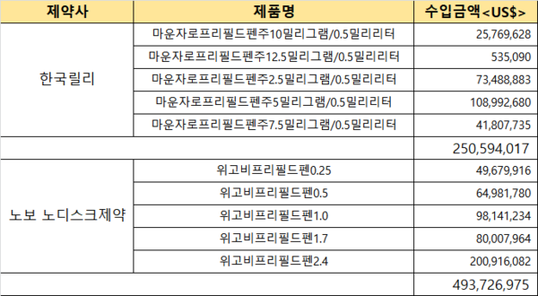 Çѱ¹ÀǾàǰ¼öÃâÀÔÇùȸ°¡ ¹ßÇ¥ÇÑ 2025³â ¿ÏÁ¦ÀǾàǰ ¼öÀÔ ¸®½ºÆ®¸¦ ºÐ¼®ÇÑ °á°ú ³ëº¸ ³ëµð½ºÅ©Á¦¾à À§°íºñ´Â 4¾ï 9372¸¸´Þ·¯, Çѱ¹¸±¸® ¸¶¿îÀڷδ 2¾ï 5059¸¸´Þ·¯Ä¡°¡ ¼öÀԵƴÙ.