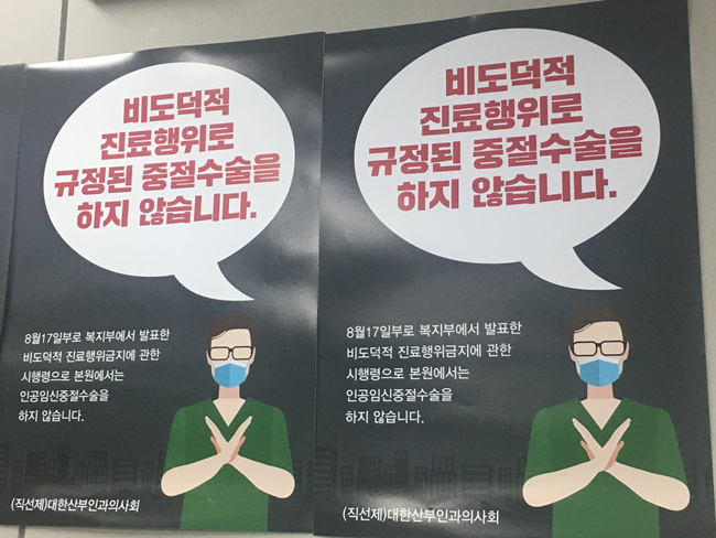 ¡ãÁ÷¼±Á¦ ´ëÇÑ»êºÎÀΰúÀÇ»çȸ´Â ÀΰøÁßÀý¼ö¼úÀ» Àü¸é °ÅºÎÇÑ´Ù´Â Æ÷½ºÅ͸¦ Àü±¹ »êºÎÀΰú º´ÀÇ¿ø¿¡ ¹èÆ÷Çß´Ù. ¡°´ëÇѹα¹ »êºÎÀΰú ÀÇ»çµéÀº Á¤ºÎ·ÎºÎÅÍ ºñµµ´öÀû Áø·áÇàÀ§·Î ±ÔÁ¤¹ÞÀº ÀΰøÀÓ½ÅÁßÀý¼ö¼ú(³«ÅÂ)ÀÇ Àü¸é °ÅºÎ¸¦ ¼±¾ðÇÑ´Ù. ÀÌ¿¡ ´ëÇÑ ¸ðµç È¥¶õ°ú Ã¥ÀÓÀº º¸°Çº¹ÁöºÎ¿¡ ÀÖ´Ù´Â °ÍÀ» ¸íÈ®È÷ ¹àÈù´Ù. º¹ÁöºÎ´Â »çȸÀû ÇÕÀǰ¡ ÀÌ·ïÁú ¶§±îÁö ÇàÁ¤Ã³ºÐÀ» À¯¿¹Ç϶ó.¡±